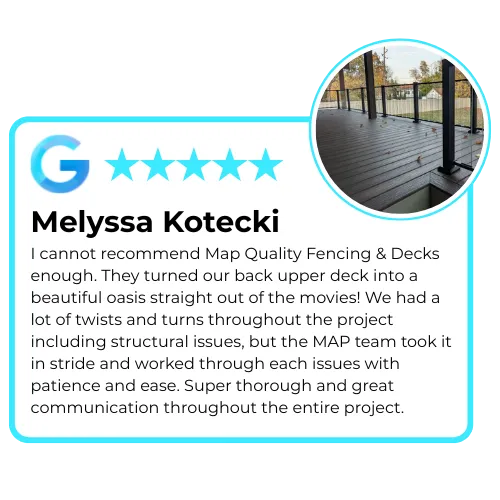 Map Quality stacks the deck in your favor with Illinois Valley's only No-Surprise deck installation experience. No vanishing acts, no surprise costs, just results.