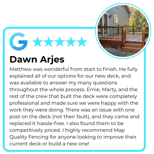 At MAP Quality Fencing & Decks, we’ve built a process that keeps you confident and in control every step of the way. From the first call to the final walk-through, here’s what you can expect from Peru's #1 Deck Builders: