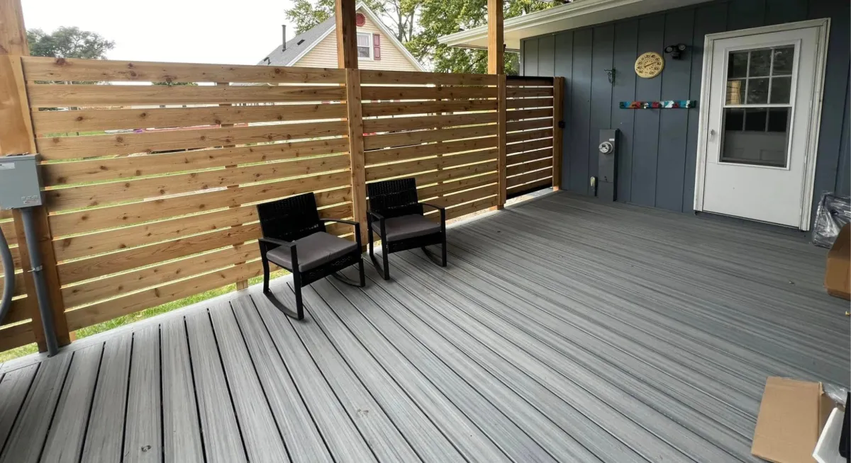 For Illinois weather and busy families, composite decking offers the best value: no maintenance, splinter-free surface, 25-year warranty, and looks beautiful for decades.